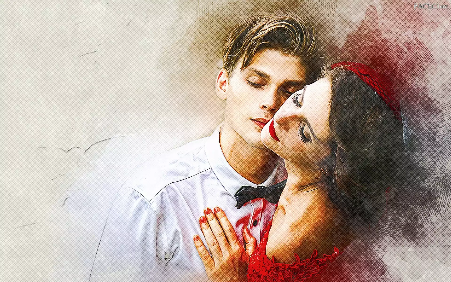 Grafika, Miłość, Mężczyzna, Kobieta, Przytuleni - faceci.biz